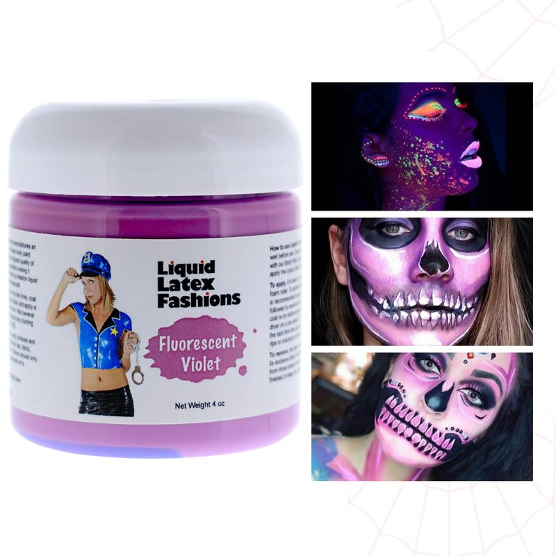 - ✅ Easy Application & Removal: This Fluorescent Violet liquid latex is easy to apply and it comes off fast too! You simply have to skin it off your skin or rinse with fulsome lukewarm water.