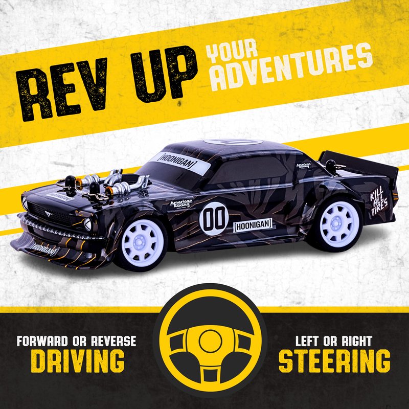 - The Real Hoonigan Powerhouse: With over 1.5 billion views on YouTube, the full-sized Hoonigan Mustang boasts 1,400 horsepower, a rally-derived all-wheel-drive system, twin turbos fueled by pure methanol, and unmatched performance on various terrains. Enjoy the power of the real Hoonigan Mustang at a mini size portion of fun, for both kids and adults
