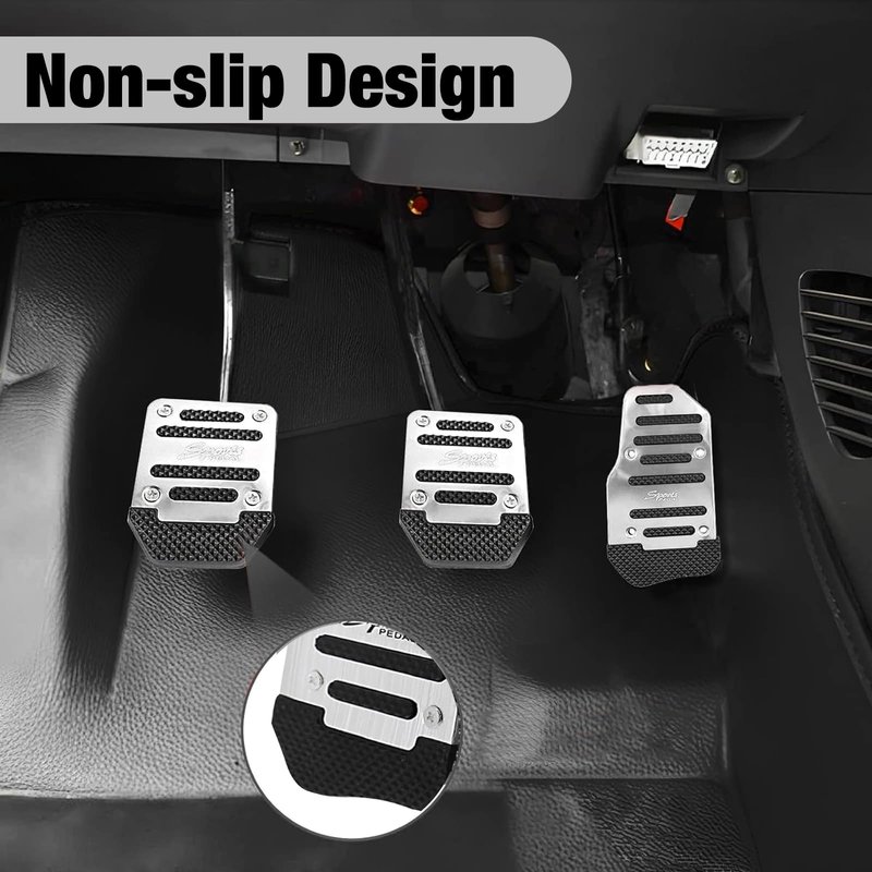 Flygun Pack-3 Car Non-slip Pedal Pads Set, Accelerator Pedal Covers, Car Brake Pedal Protectors, Automobile Universal Replacement Accessories, for Most Cars, Trucks and Vans (Silver)