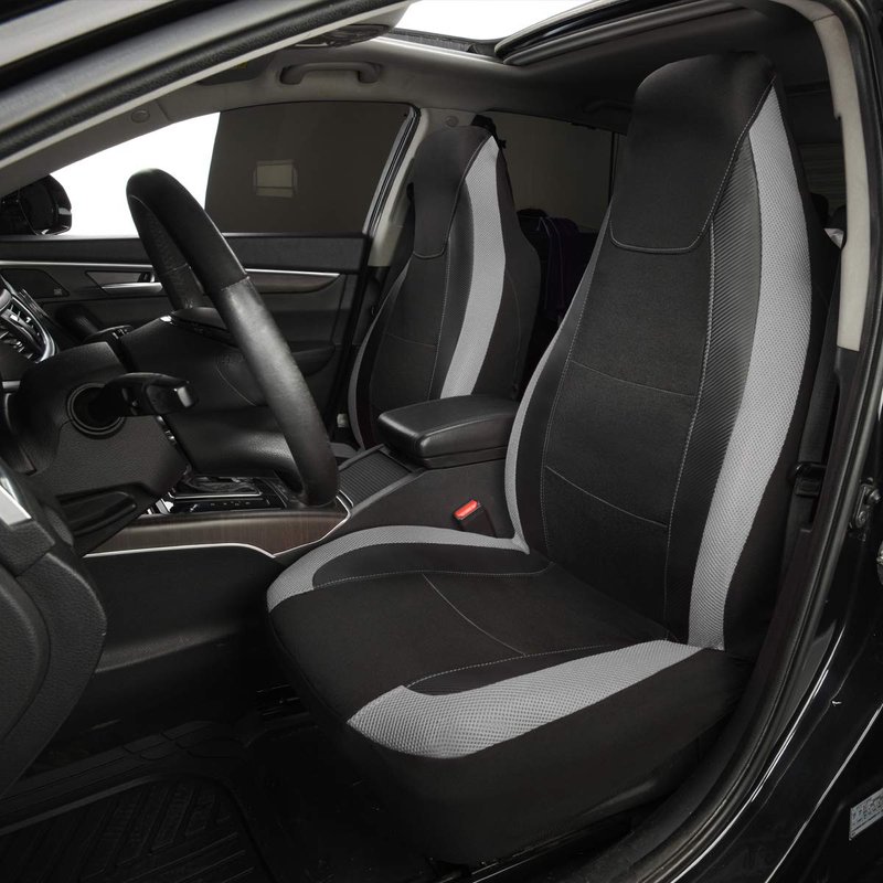 Flying Banner car seat Covers Quality Carbon Fiber Air Mesh Fabric Sport Low High Back Bucket Back Pocket Arm Rest (2 Fronts - High Bucket, Gray)