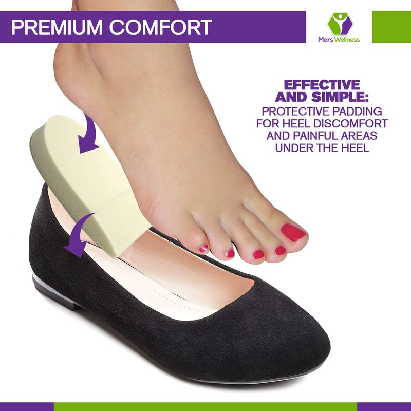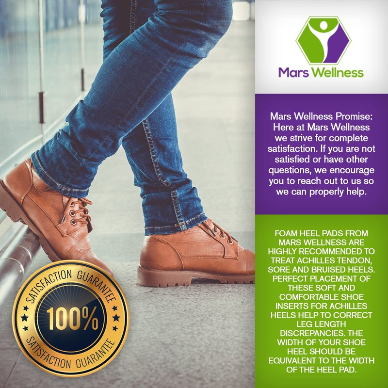 Shoe heel pads from Mars Wellness are highly recommended to treat achilles tendon, sore and bruised heels. Perfect placement of these soft and comfortable shoes inserts for achilles heels help to correct leg length discrepancies. The width of the your shoe heel should be equivalent to the width of the heel pad.