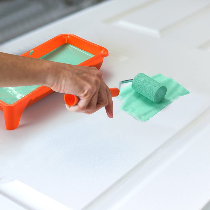 - Kit includes 4x 2-in high-density foam mini roller, a roller frame and paint tray