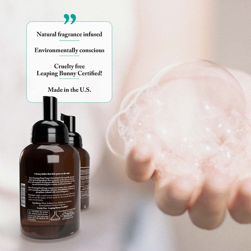 - Luxurious Hand Soap - Pamper your hands with Bayes foaming hand wash infused with natural essential oil fragrances. Formulated with carefully selected plant-derived ingredients that are gentle on the skin, yet cleanses heavy soils and gets rid of germs effectively. Our formula is non-drying and moisturizing for a creamy and luxurious lather