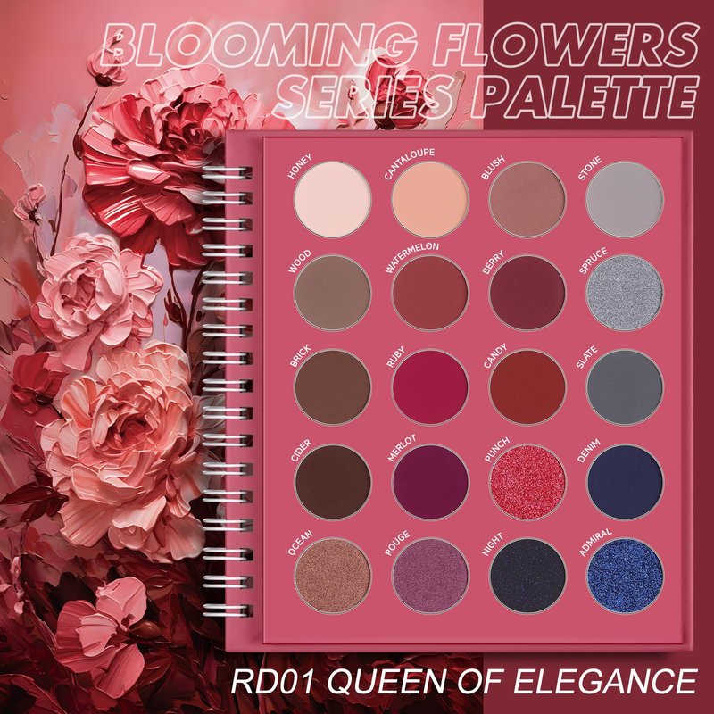 FOCALLURE BLOOMING FLOWERS SERIES Eyeshadow Palette, 20 Colors Eye Shadow Pallete, Highly Pigmented Shimmer & Matte Shades, Blendable, Long Lasting, Cosmetics Gift Kit, RD01