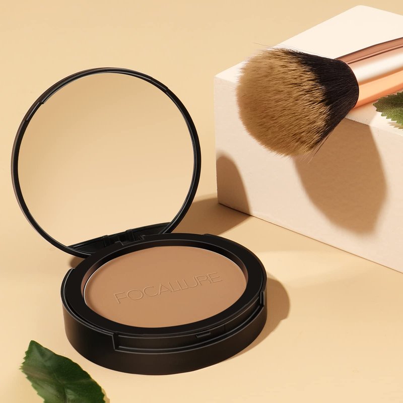 FOCALLURE Flawless Pressed Powder, Control Shine & Smooth Complexion, Pressed Setting Powder Foundation Makeup, Portable Face Powder Compact, Long-Lasting Matte Finish, Sand