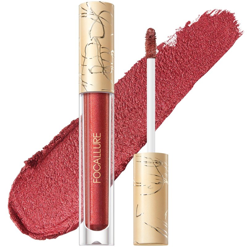 FOCALLURE Metallic Liquid Lipstick,Non Stick Cup Lip Gloss,High Impact Lip Color with Transfer-proof Wear,Long Lasting & Waterproof Lipstick Makeup for Women,RD02 Painkiller
