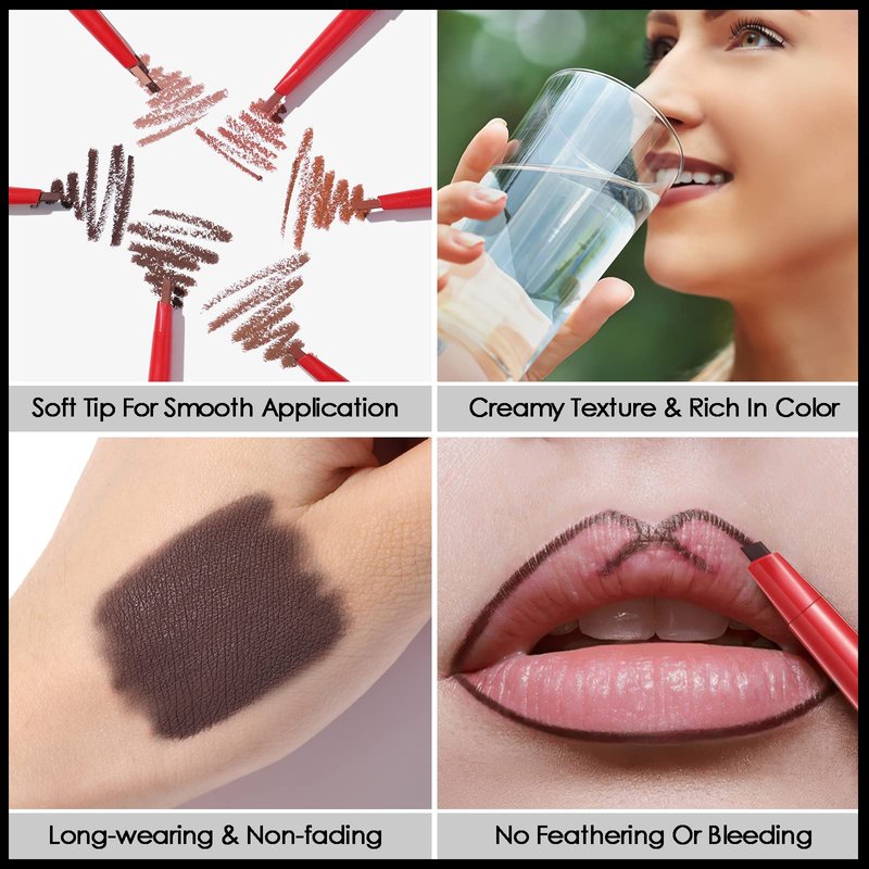 - DOUBLE ENDED DESIGN: Each lip liner pencil comes with a soft brush for helping blend seamlessly and makes your lips look fuller. The new dual-head design lets you make up & touch up outside with ease and meets the need of all occasions.