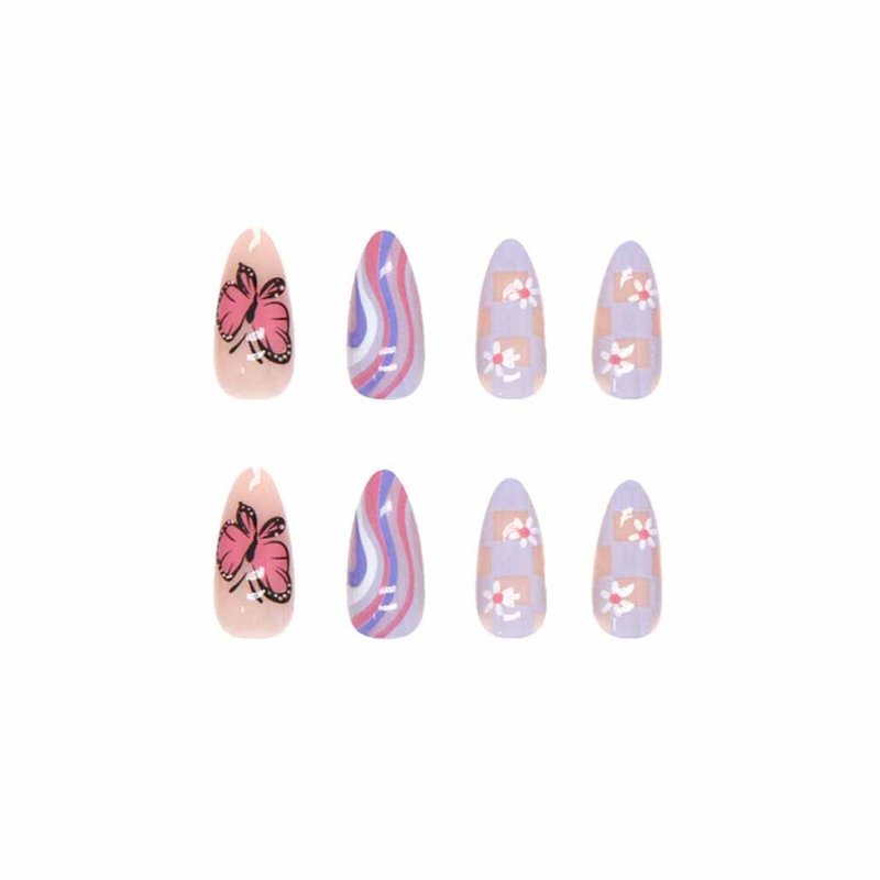 Foccna Butterfly Press on Nails Medium, Amlond Fake Nails Acrylic False Pink Nails,Artificial Nails for Women and Girls 24 pcs