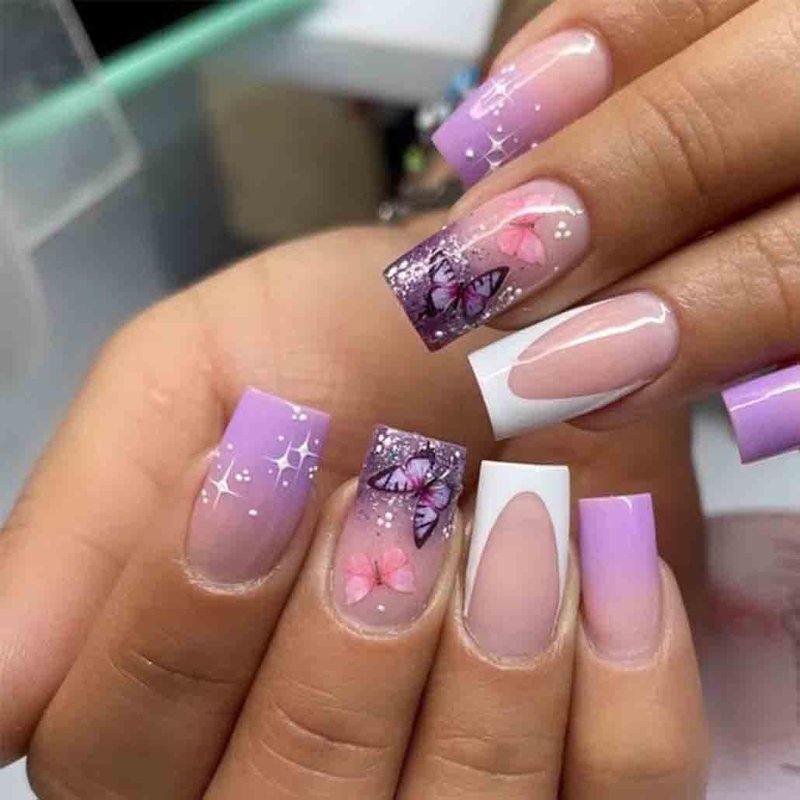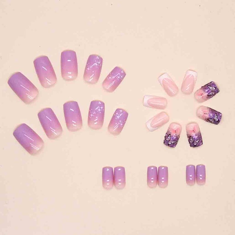 - Easy to Use:Purple fake nails with glue strcker can get your favorite manicure in just 5 minutes without waiting at the nail salon. Some simple steps allow you to get the same impressive professional effect at home.
