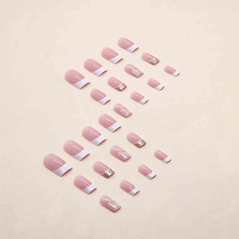Foccna French Tip Press on Nails Medium LOVE Fake Nails Square Bling Glossy White False Nail Tips Artificial Finger Manicure for Women and Girls,24pcs