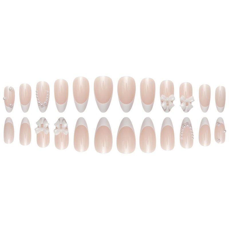 Foccna Press on Nails Almond Medium Pearl White Fake Nails French Glossy 3D False Nail Tips Artificial Nails Finger Manicure for Women&Girls -24 pcs