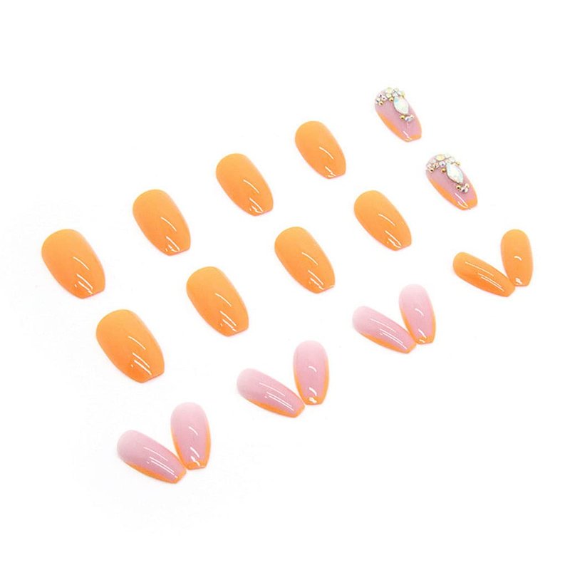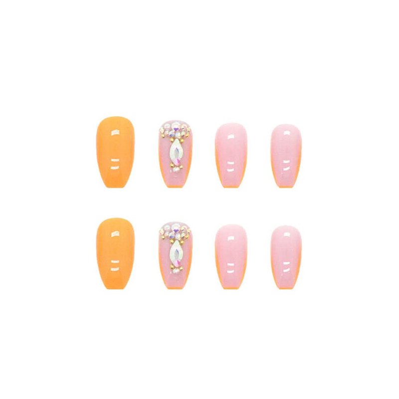 Foccna Press on Nails Medium, Fake Nails Coffin Acrylic False Orange Nails,Artificial Rhinestone Nails for Women and Girls 24 pcs