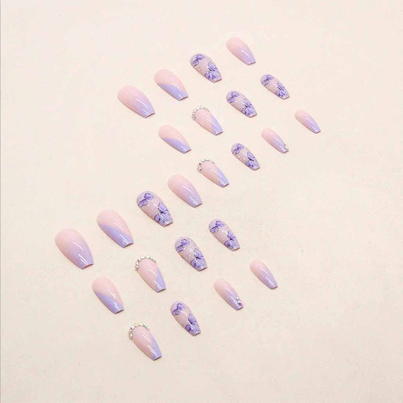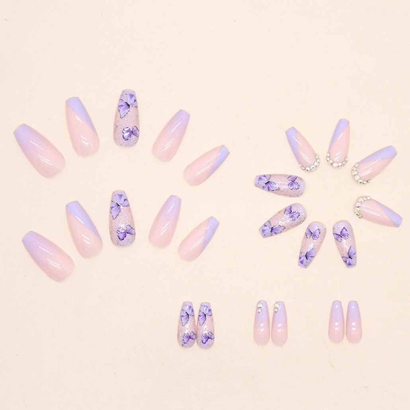 - Easy to Use:Purple fake nails with glue strcker can get your favorite manicure in just 5 minutes without waiting at the nail salon. Some simple steps allow you to get the same impressive professional effect at home.