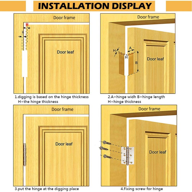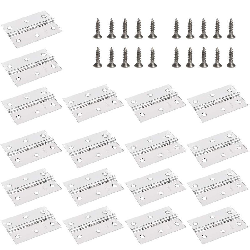 - Package - 18 pack door hinges, brushed finish, with free enough flathead screws.