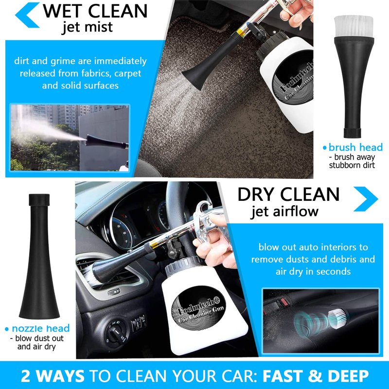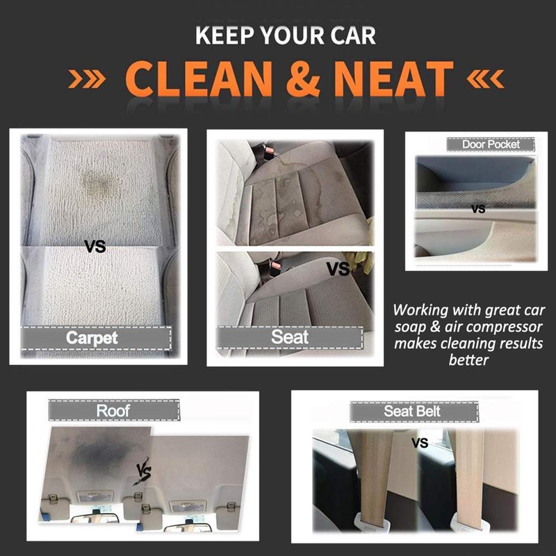 - ♦ 【Pro Car Detailing Kit, Easy to Use】A must have tool in your car car cleaning supplies listing, whatever for car detailer or do-it-yourself enthusiasts. Working with your air compressor to jet stable airflow or mist, and then dirt and grime are immediately released from fabrics, carpet and solid surfaces. Save your time and money!