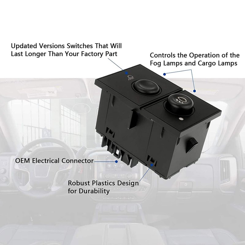 Fog Light Switch and Cargo Lamp Switch - Compatible with 2003-2006 Chevy Silverado 1500 2500 3500 GMC Sierra 1500 2500 3500 Cadillac Escalade - Replaces 15143597 15076588