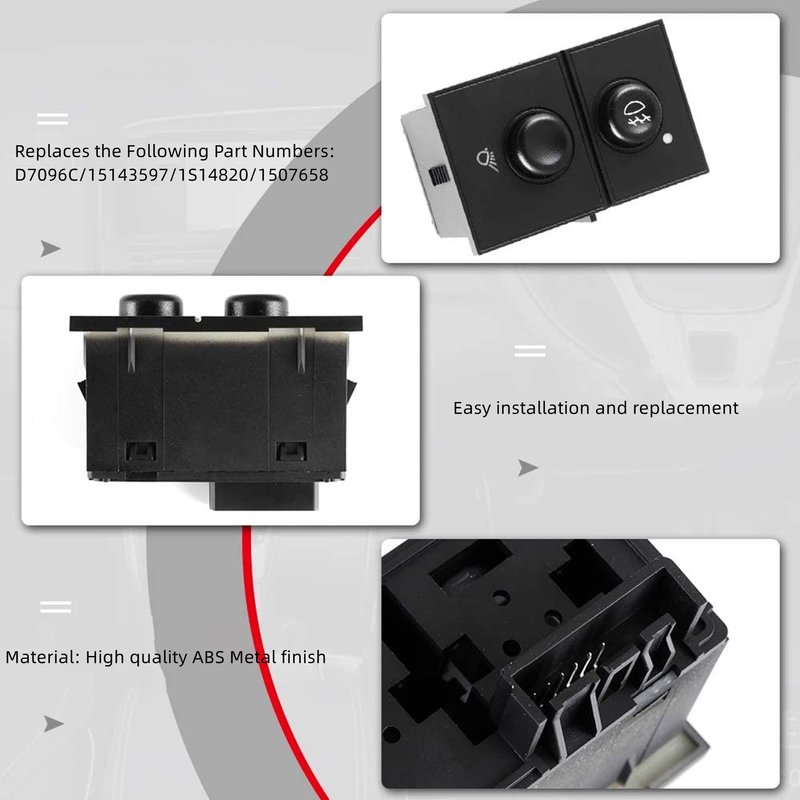 - Relaces Part Numbers - 15143597, 15076588, D7096C, perfect replace the fog light switch on your Chevy, GMC and Cadillac, installation can be completed under 30 minutes and you can save hundreds dollars by doing this repair yourself.