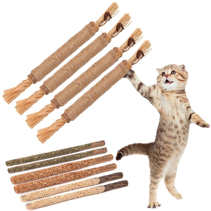 - Interactive & Fun:The natural sisal rope and raffia are bite resistant,cats will bite,chew,kick and cuddle the silvervine sticks for big fun.You can feed your cats directly to strength the relationship between you and cats.