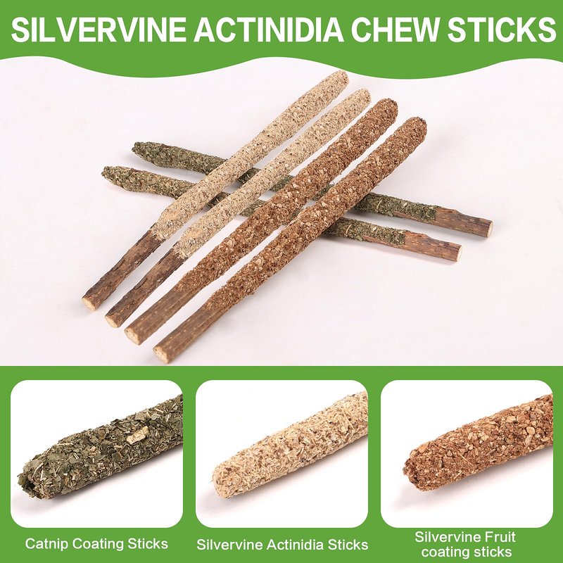 - Package Includes:4 pack silvervine sticks with fruit balls and 6pcs coated chew sticks are includes in total.
