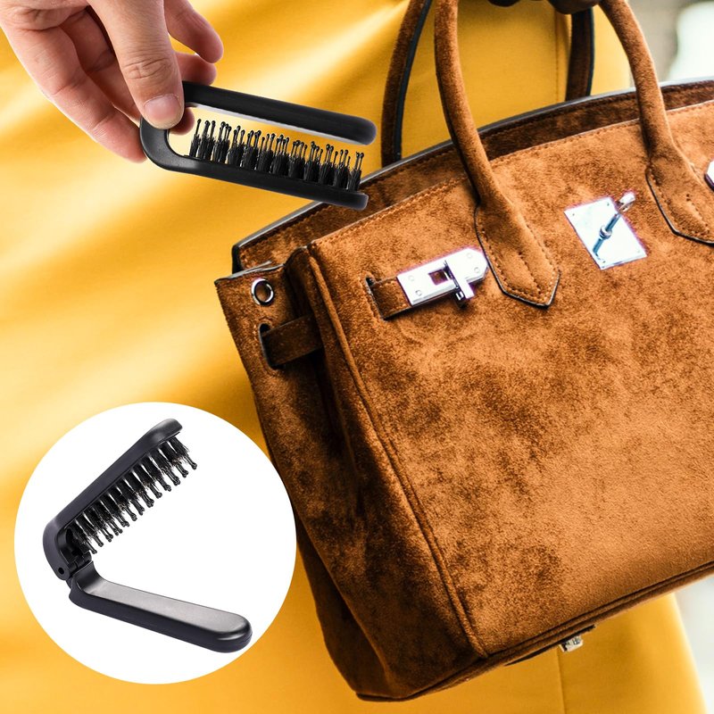 Foldable Brush for Purse, 2 Pack Small Portable Travel Hair Brush with Natural Boar Bristle and Nylon Bristle,Folding Comb Mini Wet Hairbrush Compact Pocket Brush for Car Gym Bag Locker (Black)