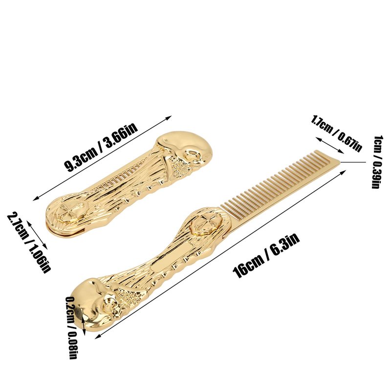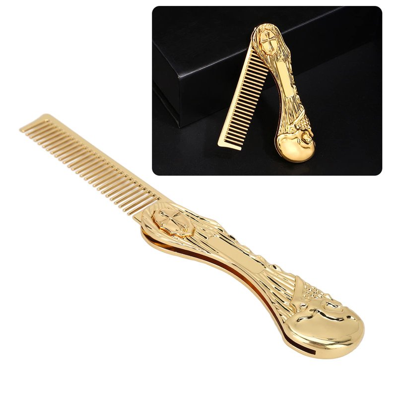 Foldable Hairstyling Brush Zinc Alloy Prevent Static Pocket Mini Men Oil Hair Comb Hairdressing Comb Portable Suitable for Home Hair Salon or Travel(Gold)