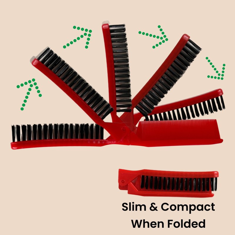 - Set of 2 folding comb/brush combo in red & white