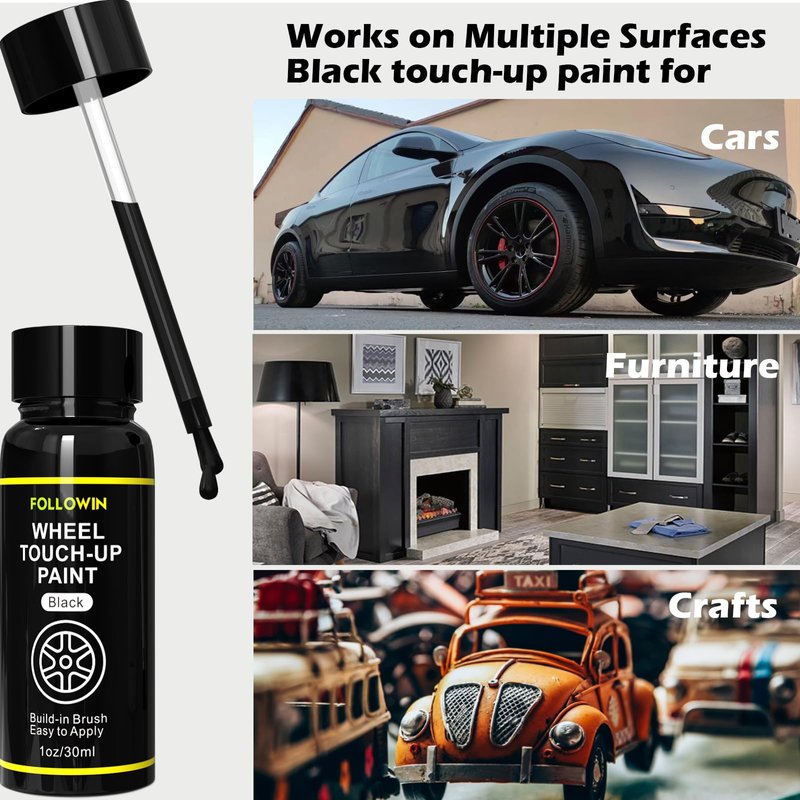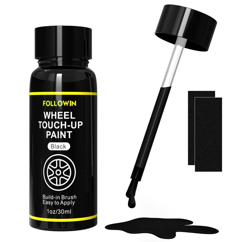 FOLLOWIN Black Rim Touch Up Paint for Cars, Black Wheel Paint Repair Kit, Automotive Rim Scratch Repair, Touch up Paint Kit with Brush, Repair Rim Curb Rash, Wheel Scratch, Surface Damage Quick and Easy, Touch Up Paint Bottles with Brush 1OZ(30ml)
