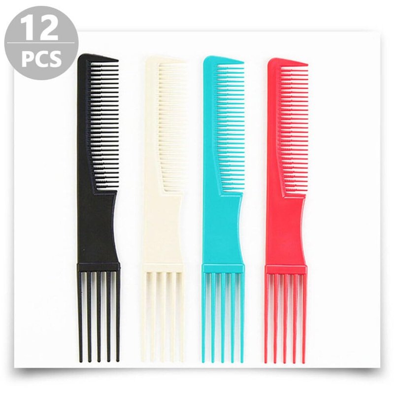 FOMIYES Teasing Comb with Pick 12PCS Hair Pick Hair Styling Comb, Hairdressing Comb, Two-sided Hair Comb Lift Teasing Comb for Salon Home (Random color)