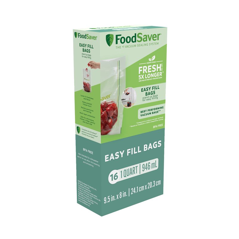 FoodSaver Easy Fill 1-Quart Vacuum Sealer Bags | Commercial Grade and Reusable | 16 Count