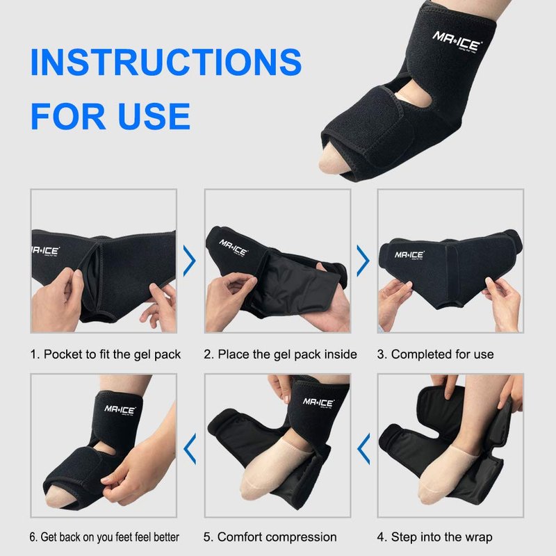 - EASY TO USE - This ankle achilles ice pack can be easily worn on the right or left foot, and provides full coverage to promote quicker recovery. No gel leakage, stay long-lasting coldness for specific injured areas of ankle and foot. Aids in recovery in foot aches, achilles pains, ankle soreness, sprains.