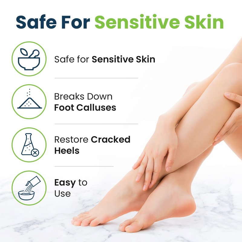- A COMPLETE, 3-STEP ROUTINE TO BEAUTIFUL FEET: To enjoy the great results of this powerful duo, first soak your feet for 15-20 minutes in this deeply relaxing and nourishing salt blend. Once you have soaked, washed and dried your feet with a clean towel, apply the callus remover gel only to the toughened areas wearing a glove and let it sit for 15 minutes. Then, just rinse off both feet to remove residue and dead skin and reveal your rejuvenated feet.