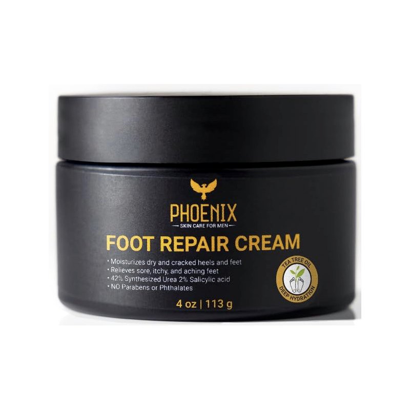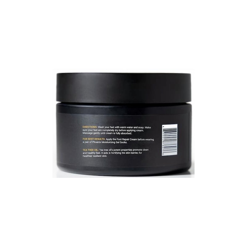 Phoenix Skin Care for Men's Foot Repair Cream is your ultimate solution for dry, cracked, and tired feet. Formulated with your skin's health in mind, our cream is free from parabens and phthalates, ensuring a safer and more natural choice for your skin. Infused with Tea Tree Oil and Lemongrass, our foot cream not only moisturizes and revitalizes your skin but also promotes a healthy foot biome. Say hello to softer, healthier feet. Whether you're dealing with rough heels, calluses, or simply need a refreshing treat for your feet, our Foot Repair Cream is here to rescue your soles. Add Phoenix Skin Care for Men's Foot Repair Cream to your daily routine and step into a world of comfort and confidence. For optimal use, we recommend using our Foot Repair Cream before wearing our moisturizing gel socks to lock in moisture and restore your feet with deep hydration.