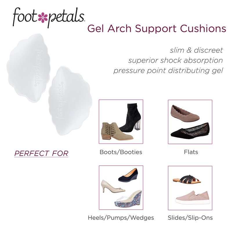 Foot Petals Arch Support Cushion, Arch Comfort, Reduce Foot Fatigue, Women's Heels, Pumps, Boots, Wedges, Flats, Sandals, Gel