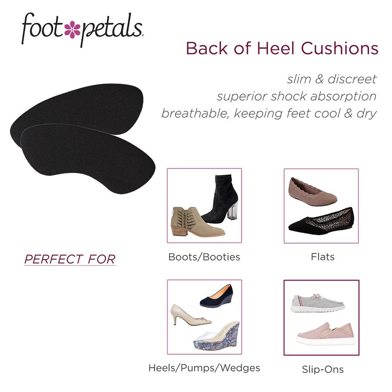 Foot Petals Womens Back of Heel Cushion Inserts, Heel Protectors, Comfortable Heel Grip for Pain Relief and Sizing, 1 pair, Black