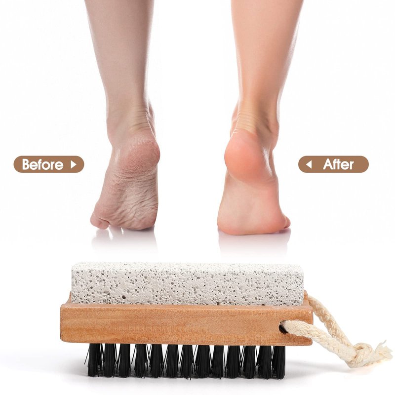 2PCS 2-IN-1 Manicure Pedicure Tool - Nail brush and pumice stone with Wooden Handle and Hanging Rope The dual sided nail cleaning brush has a nail brush on one side and a pumice stone on the opposite side to remove callus and hard skin. The great pick for mechanics, locksmiths, gardeners, and other professionals involved in manual work, also a good choice for DIY pedicurists, manicurists, and nail art specialists. Attention - For hygienic purposes, do not share previously used Nail brush and pumice stone with others - Do not use on delicate, soft, or inflamed red skin How to care for a 2-IN-1 Manicure Pedicure Tool: - After use, rinse the nail cleaning brush and pumice stone with soap and water - Allow it to dry