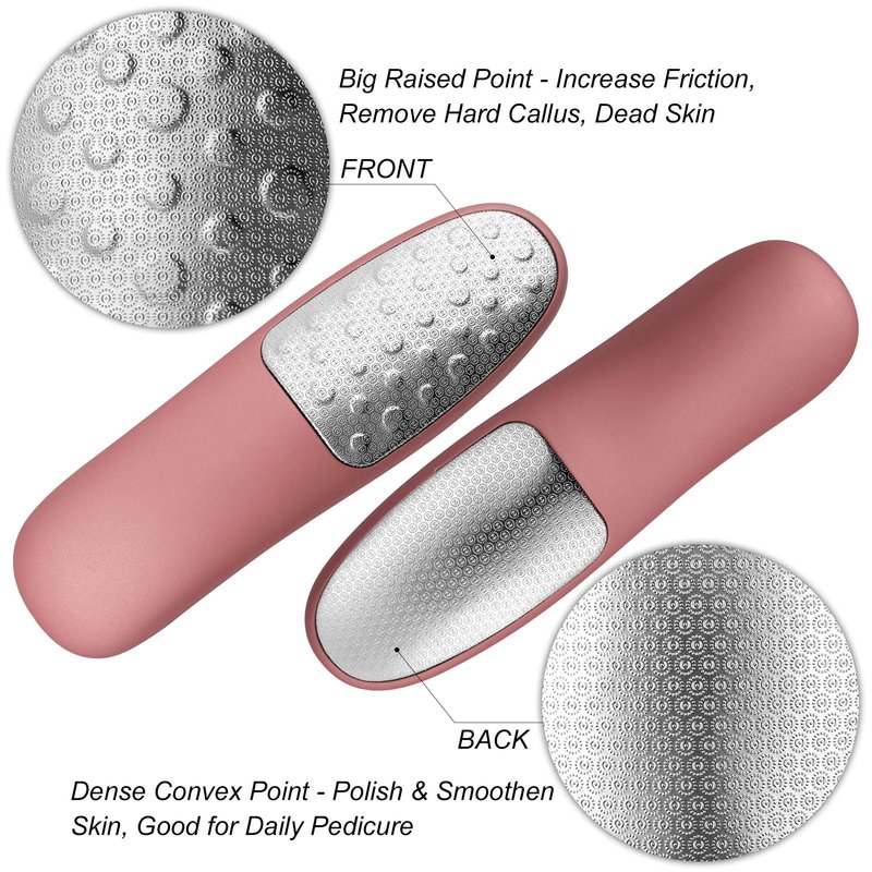 👣【CONVENIENT & BEAUTIFUL】 Comes with a stand which makes storage more convenient. After using the foot scrubber, just simply put it back on the stand and place it on the table. Pink color makes it a lovely decor in your room.