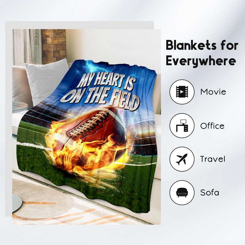 This football throw blanket is both practical and full of funny. The vibrant colors and sports design add a fun touch to various room, whether it's laid across the sofa or spread out on the bed. For football players, it's a personalized piece of room decor that's both practical and playful.
