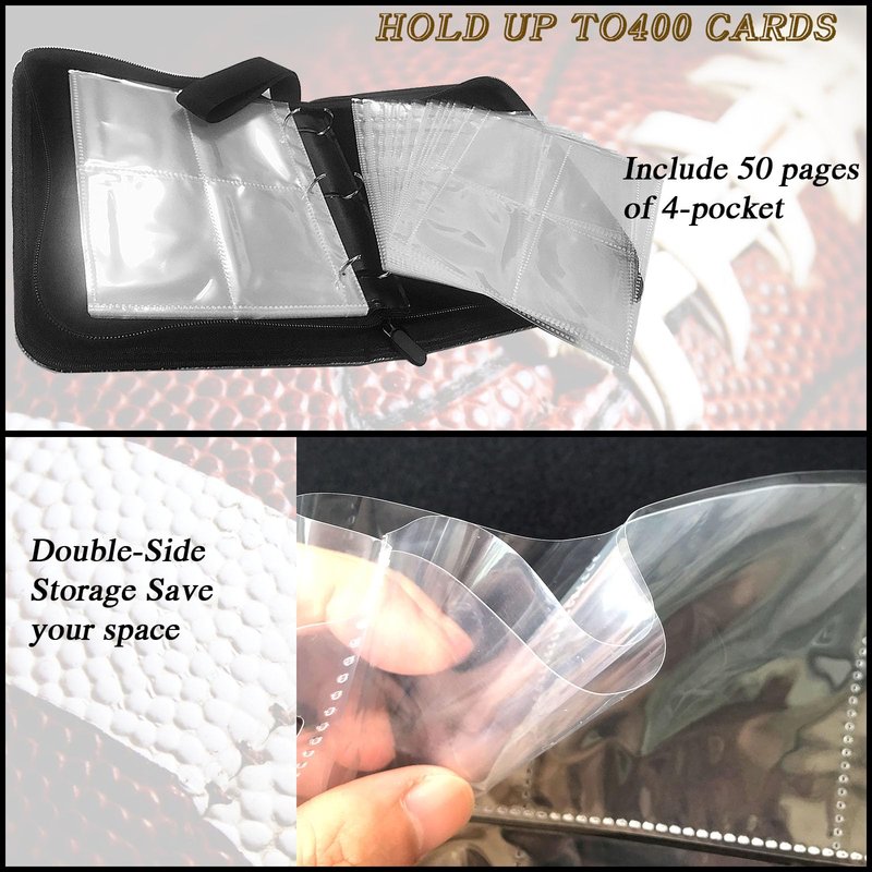 Football card binder is made of high quality PU leather, durable and waterproof. Highly transparent card sleeve for easy display and browsing. The zipper design ensures that the cards cannot be lost. All-round protection for your cards. The 4-pocket card binder with 50-page sleeve can hold 400 cards. Store and display your cards in this trading card binder to keep them organized. Compatible for Different Card, Trading card binder fits all standard size cards like soccer card football cards, baseball cards, top aces, game cards, attack cards and more.