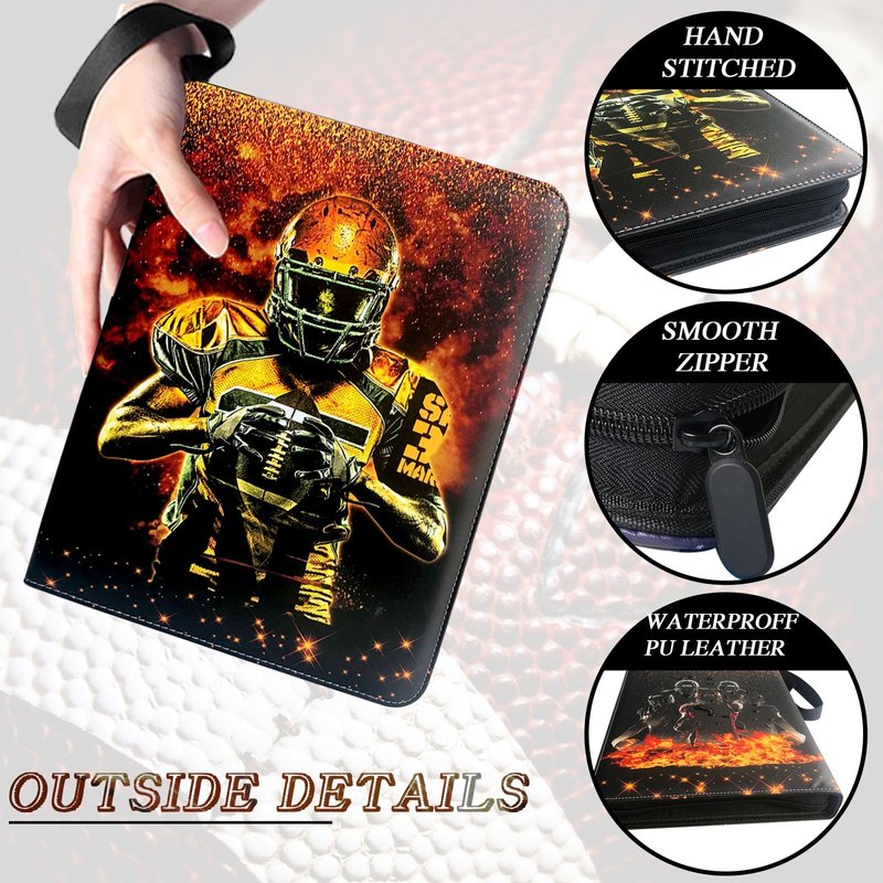 - 【 Unique design】Football card binder with sleeves have a unique design, bright and colorful cover design, and football fans like this design to make them look different. The extra wristband design makes the card binder easy to carry to your friend's house or travel.