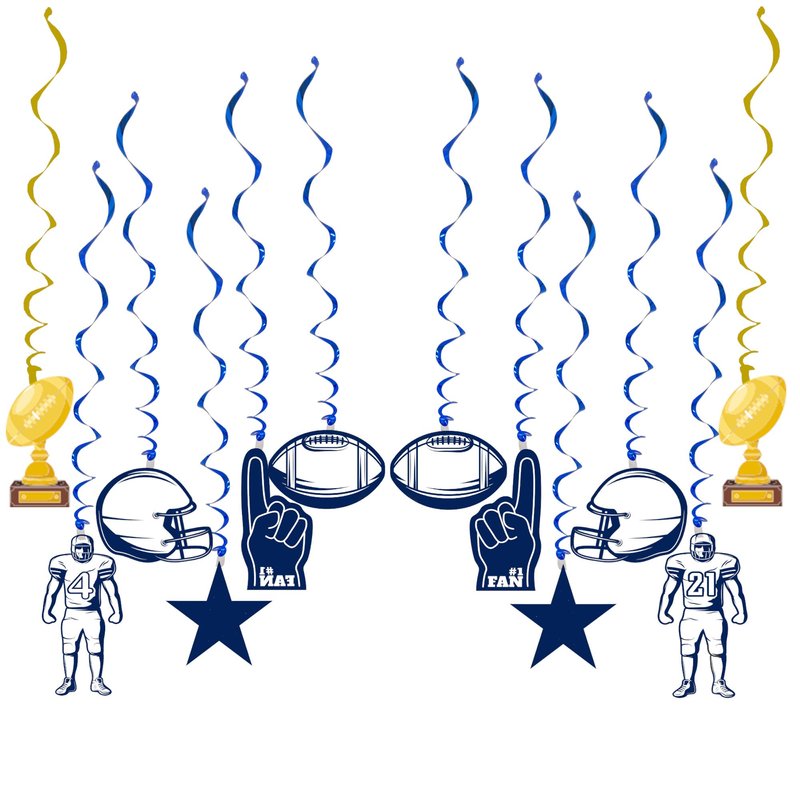 Football Party Streamers, 24Pcs, Helmets Stars Trophy Boys Birthday Party Favors, Hanging Swirls Party Decor Supplies