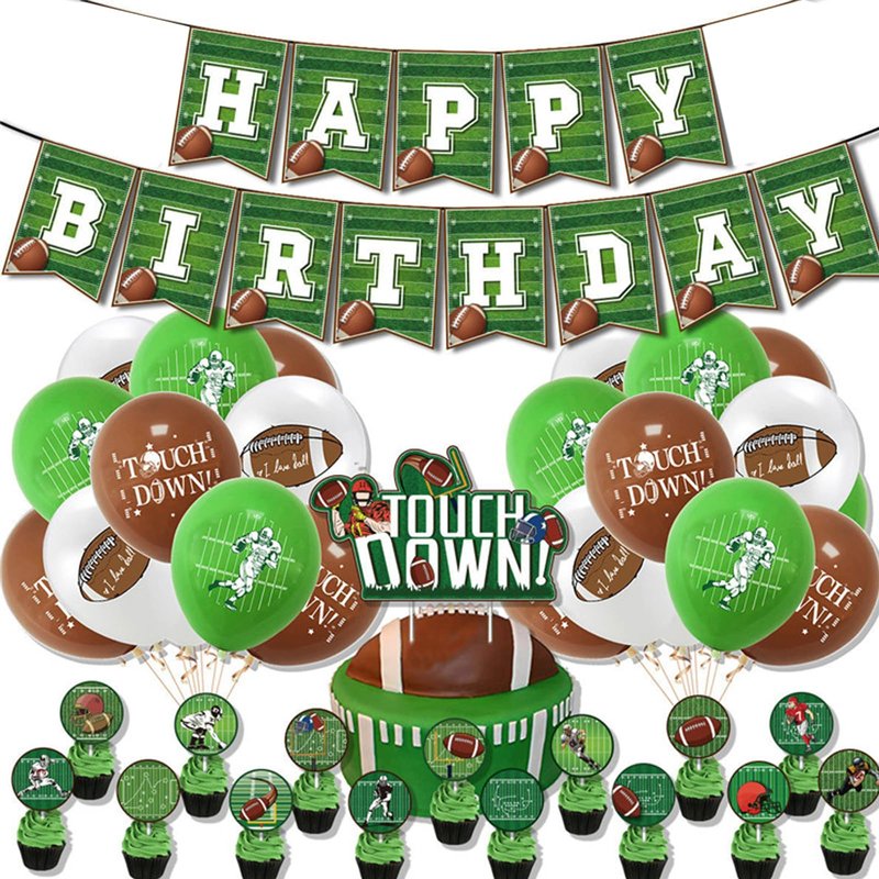 Football Themed Birthday Banner Sports Party Decorations Cake Toppers Hanging Streamers Set