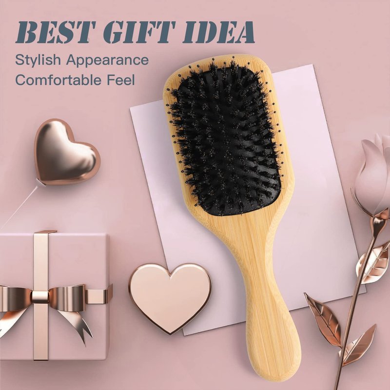 - â ăPERFECT FOR ALL HAIR TYPESăSuitable for all hair types! The boar bristle hair brush is great for thick, thin, curly, long, short, wet or dry hair. Choose pefect healthy gift for your love. A great day begins with your hair.