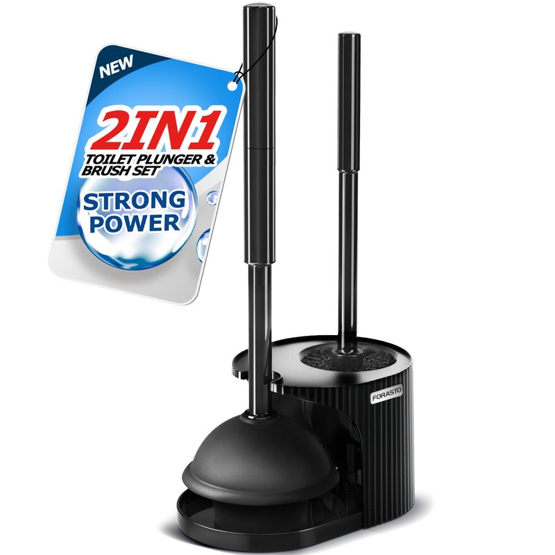 FORASTO 2 in 1 Toilet Plunger and Brush Set,Extended Handle Plunger,Toilet Bowl Brush Plunger Set,Bathroom Cleaning Tools ,Toilet Brush Plunger Combo,Cleaning Brush,Bathroom Cleaning Supplies