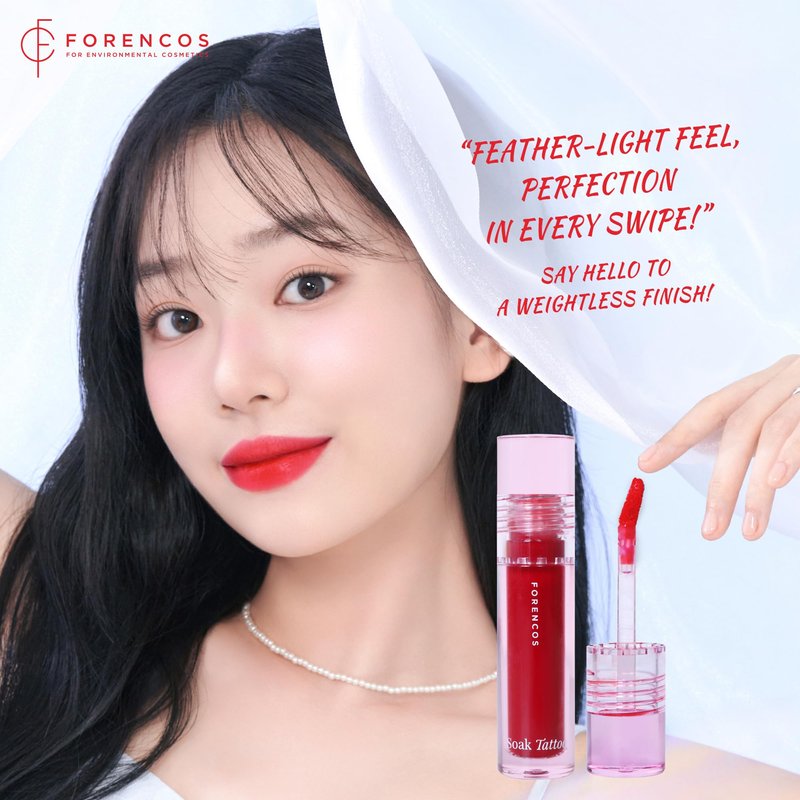 Forencos Soak Lip Stain/Tint (Water Gel) – a vegan, cruelty-free, and gluten-free lip product that aligns with your ethical values while delivering vibrant, long-lasting color. Free from animal-derived ingredients, parabens, and gluten, this lip stain is perfect for those committed to a vegan lifestyle but looking for a long-lasting lip product. The water gel-based formula effortlessly seeps into your lips, ensuring a vivid stain that lasts all day without fading or smudging. The color you see is the color you get, with consistent, intense pigmentation that stays true from the first application to the last. Designed for convenience, this pocket-sized tint is easy to carry, making it your go-to for any occasion – whether it's a day at work, a night out, or a weekend getaway. Waterproof and sweat-proof, it guarantees worry-free wear, allowing you to enjoy bold, eye-catching color without the need for constant touch-ups. Experience a weightless, non-sticky finish that feels smooth and comfortable!