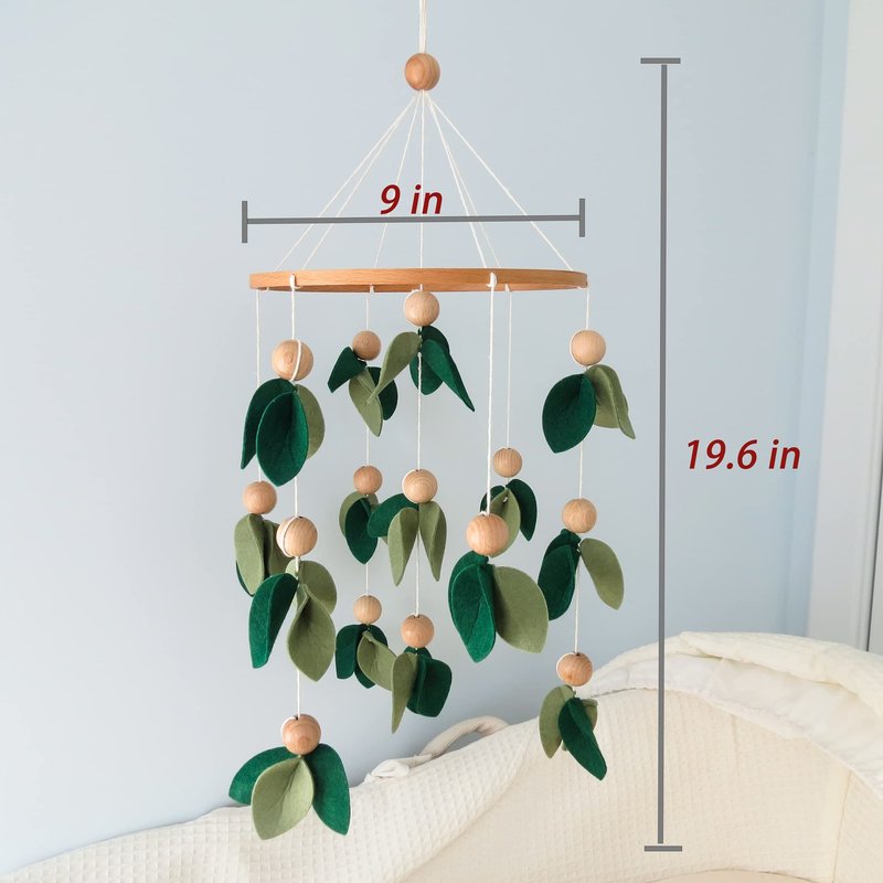 Forest Baby Mobile Green Leaf Mobile for Crib Mobile with Wooden Bead