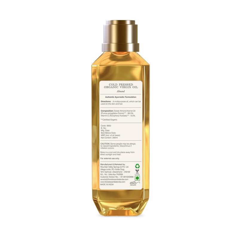 - Forest Essentials Organic Cold Pressed Virgin Almond Oil - 200ml