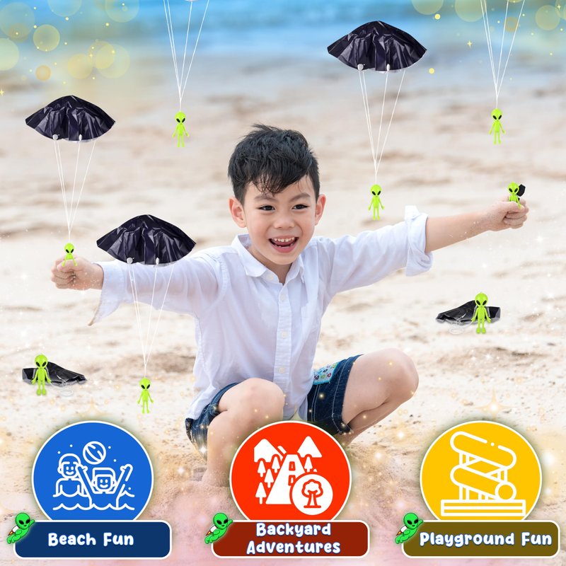 - LEARNING MEETS PLAYTIME!... Use these parachute toys to teach your little ones about gravity, air resistance, and the wonders of physics, all while having a blast with their alien pals. As they slowly land, the paratroopers imitate the actual landing situation, improving children’s manipulative ability, operational skill, intelligence, and creativity while playing simulation games.
