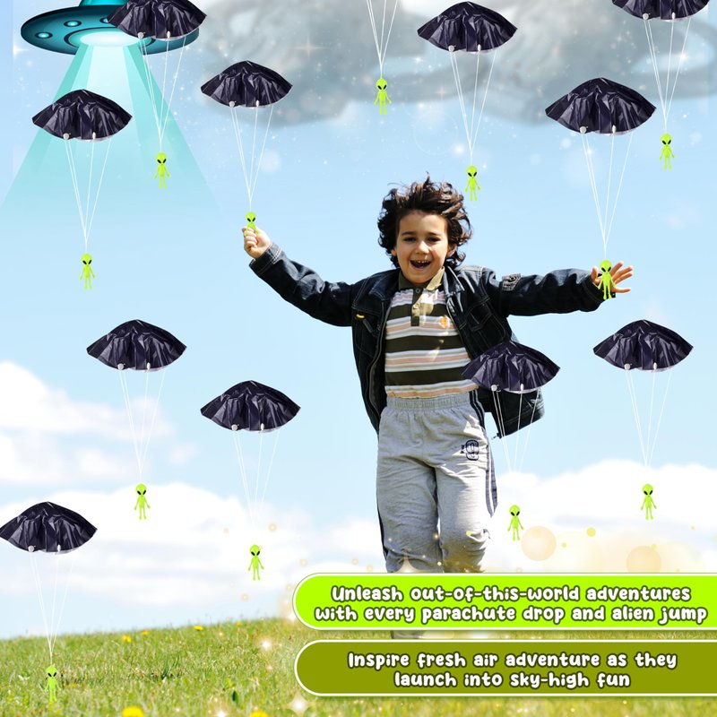 From birthday parties and family gatherings to holidays, these alien paratroopers make an adventurous addition to any occasion. Coming in a vibrant and colorful design with safe and reliable parachutes, this 12-piece toy set will become your child's loyal companion for adventures. From launching them high into the sky to witnessing their graceful descents, every moment is filled with wonder and excitement.