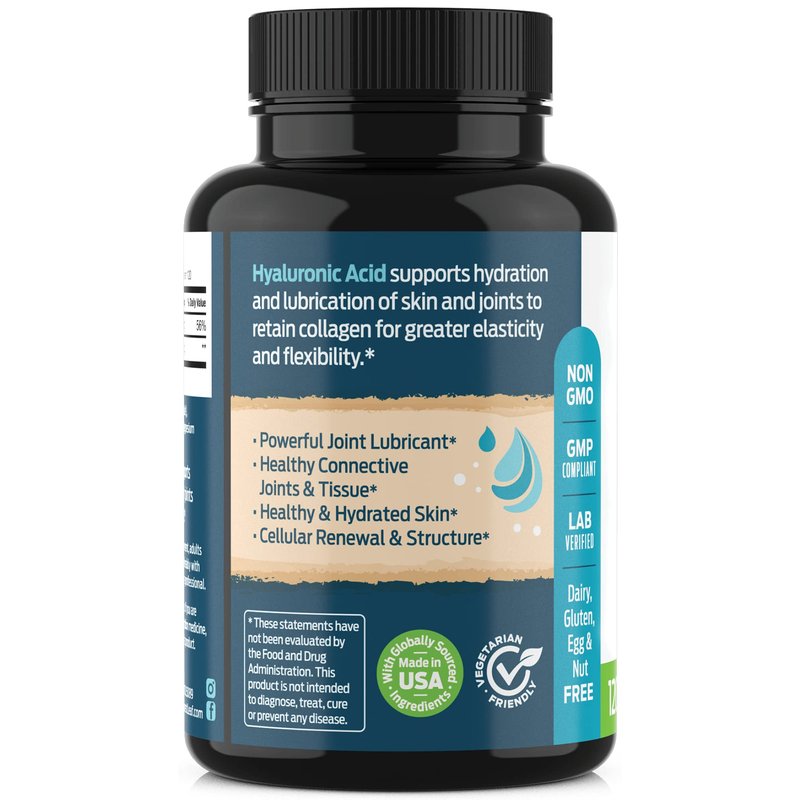 - EASY & CONVENIENT - Each vegetable based capsule of Hyaluronic acid dietary supplement is easy to swallow. This product is free of artificial additives, flavors, including sugar, gluten, dairy, nuts, soy, fish, egg, and hormones. It is also non GMO and made in the USA