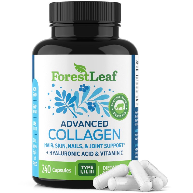 ForestLeaf Multi Collagen Pills - Collagen Men & Collagen Women - Hydrolyzed Collagen Supplements with Vitamin C & Hyaluronic Acid - Collagen Capsules for Hair, Skin & Nails (240 Peptide Capsules)